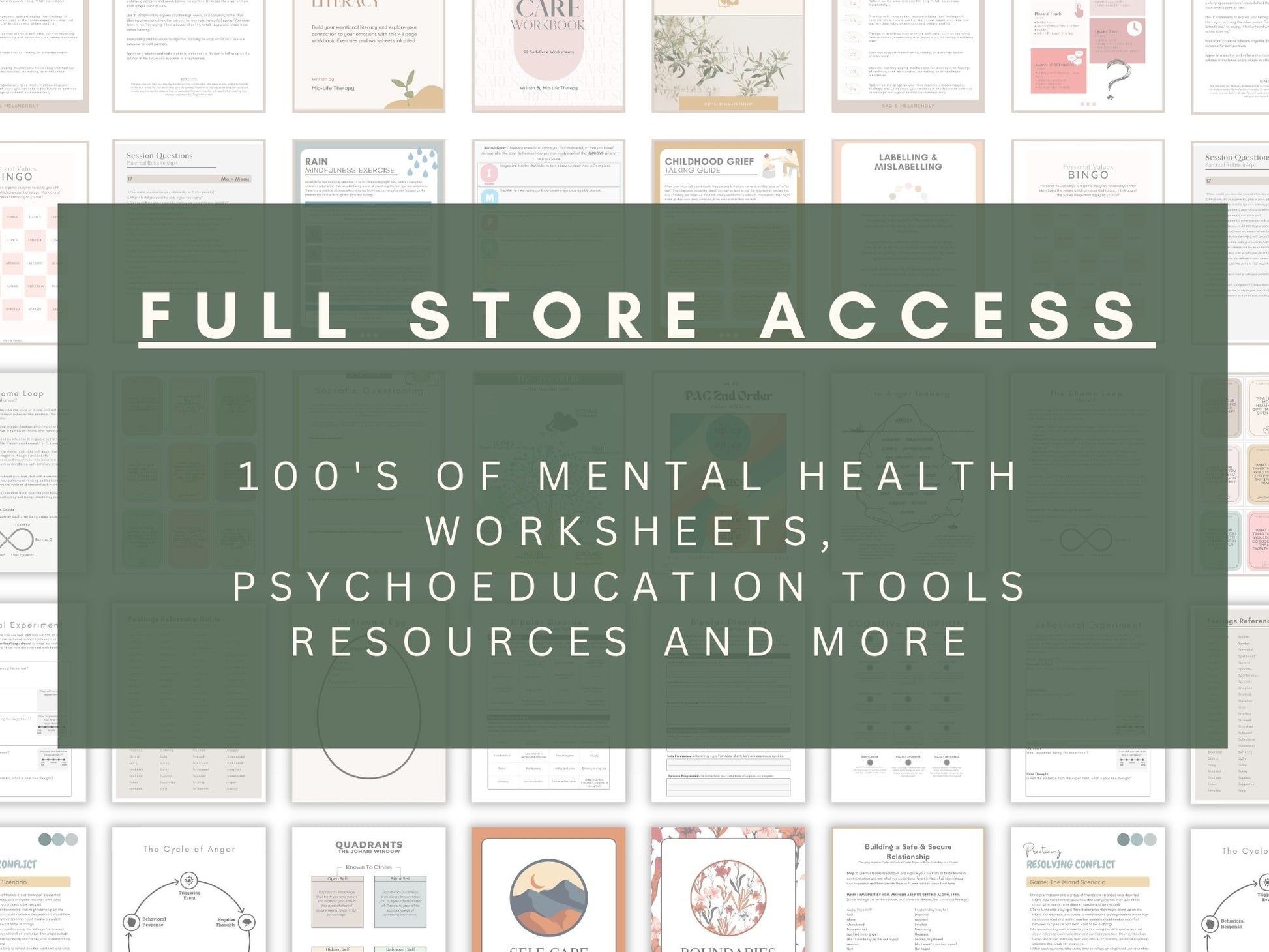 Psychoeducation tools for all Mental Health Professionals. Find worksheets, handouts, training guides and more for all modalities including CBT, Person-Centred, Transactional Analysis and more.......