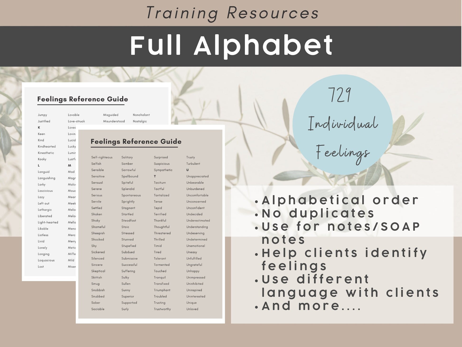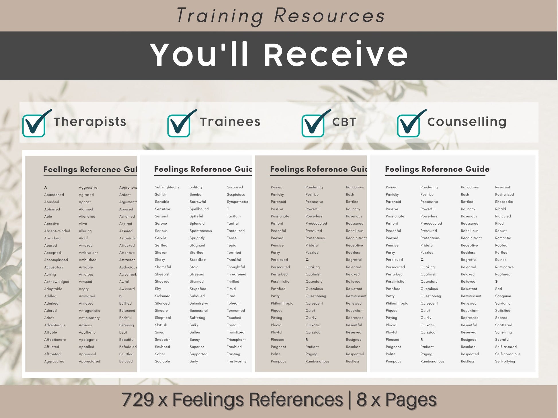 729 Feelings Reference Guide for Therapists