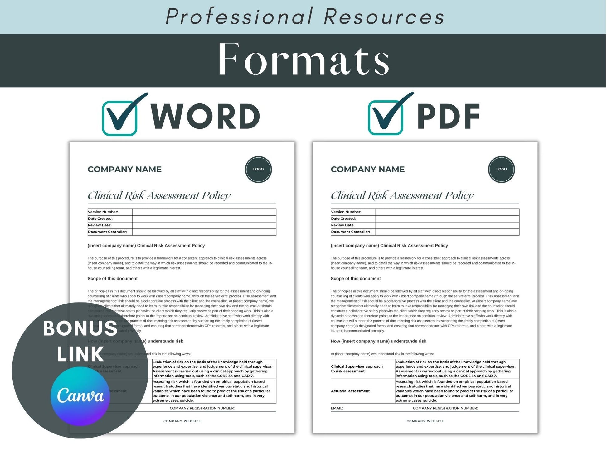 Clinical Risk Assessment Policy Template for Therapists and Private Counselling Practice.