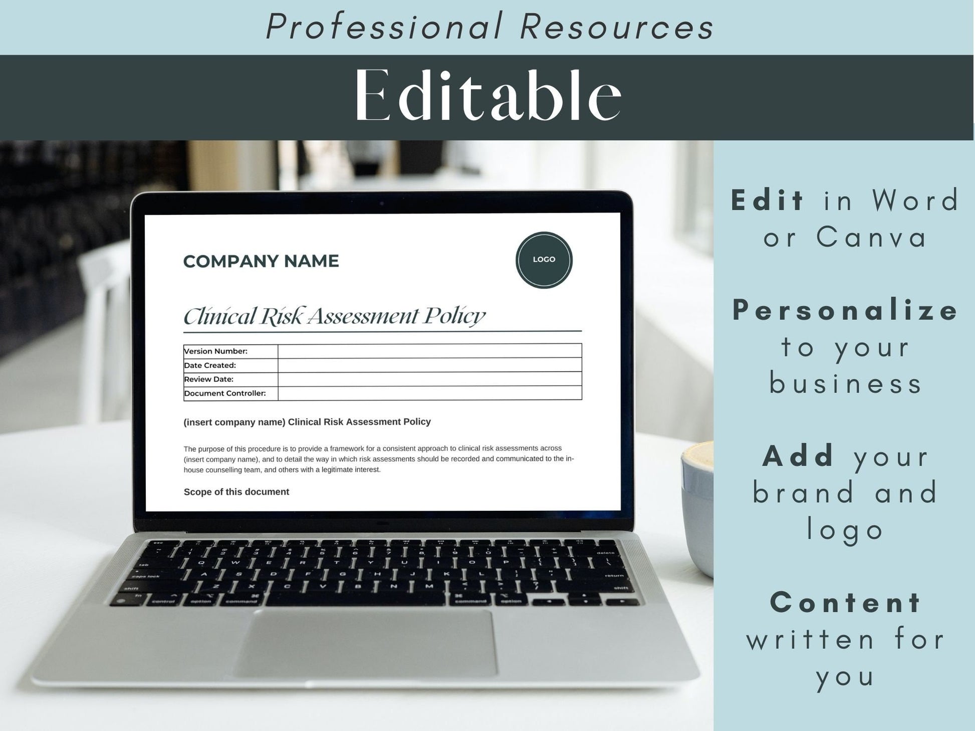 This clinical risk asessment policy document is designed to help you have the best policies and procedures for your business. Be professional and organised with these written for you templates.