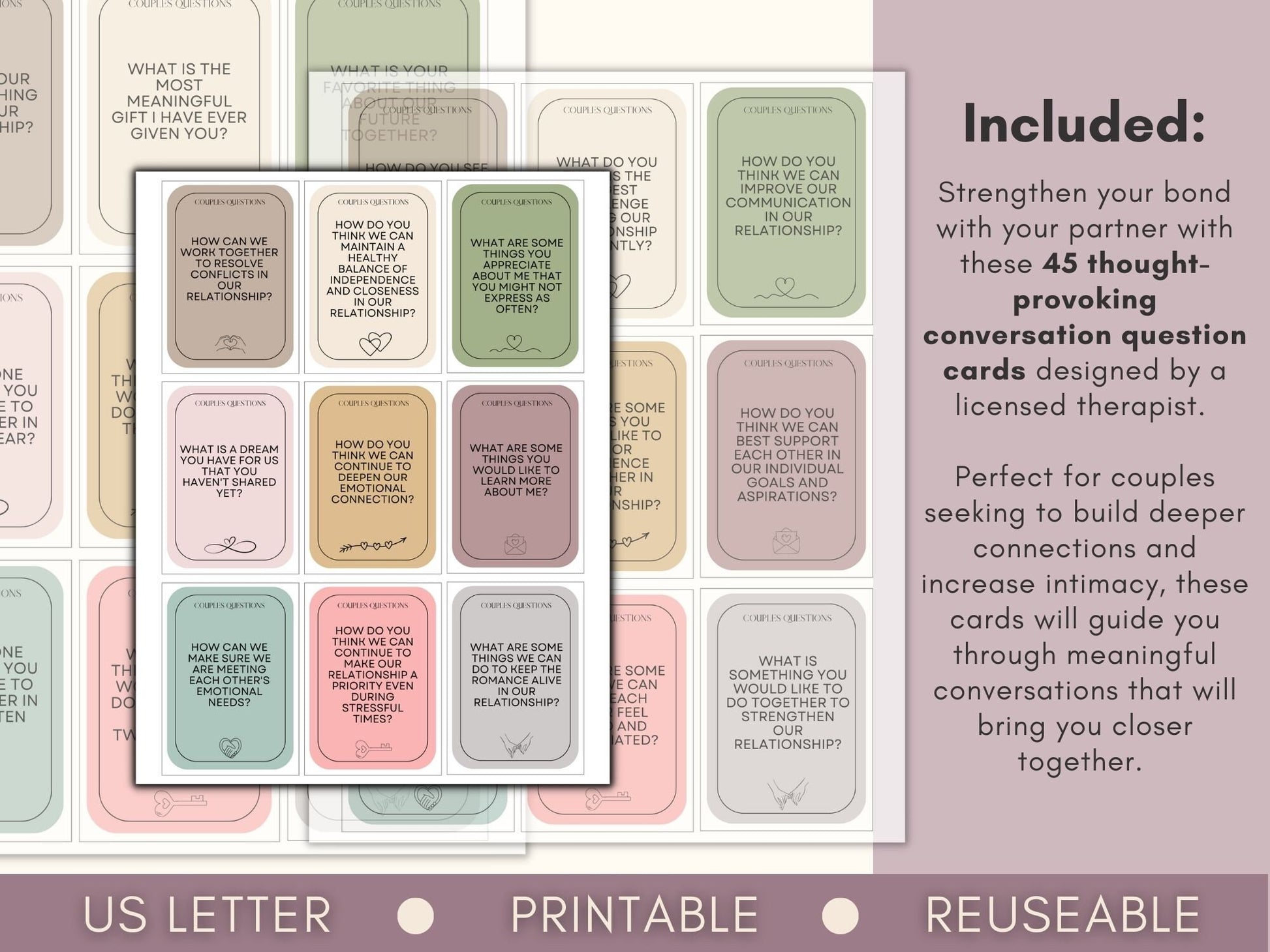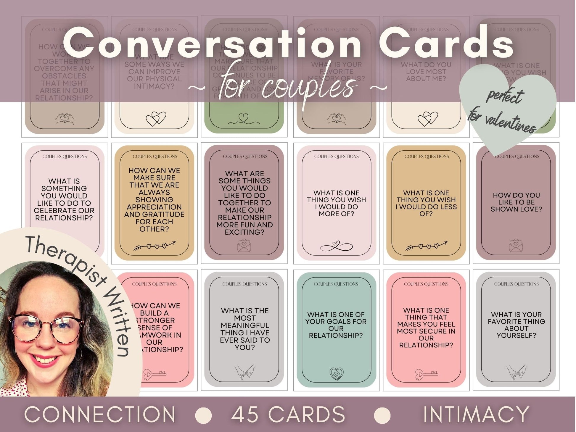 Revitalize your relationship with this pack of 45 Intimacy & Connection Conversation Cards. Perfect for couples seeking to deepen their bond, each card features thought-provoking questions and prompts to encourage meaningful conversations and intimacy. Whether you're spending a quiet night in or looking to spice things up, these cards will bring you closer together and foster a stronger connection. Order now and reignite the spark in your relationship.