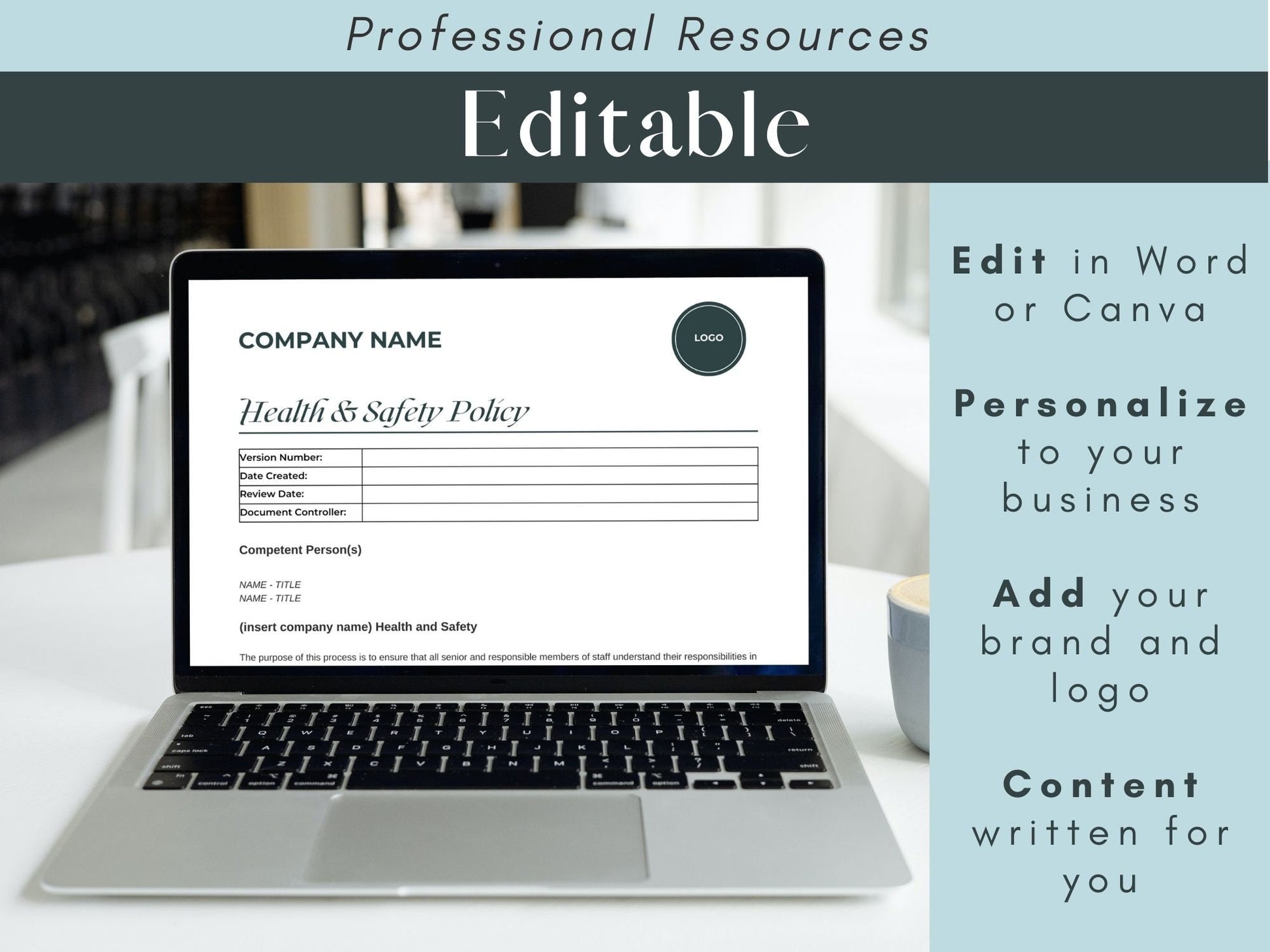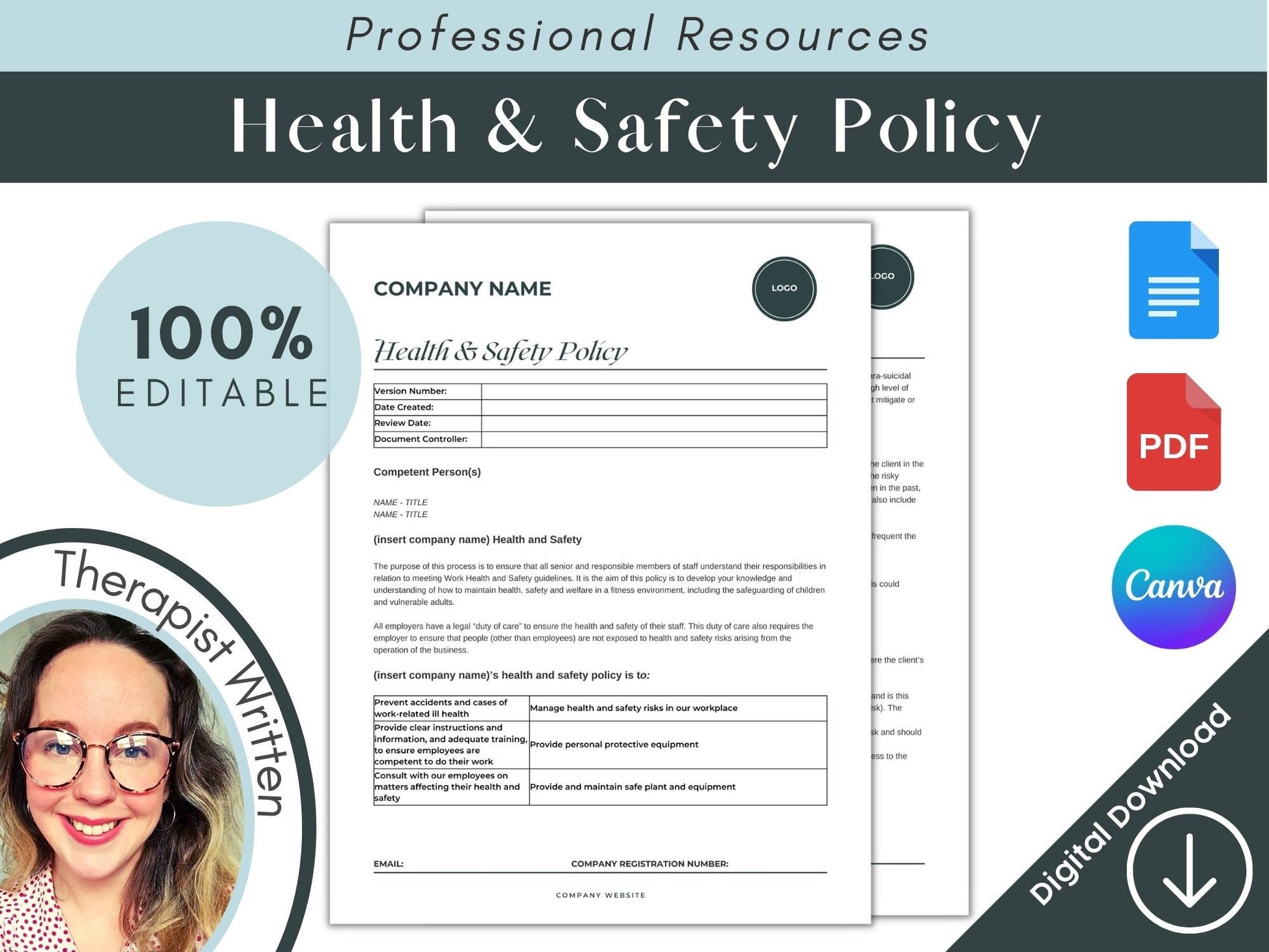 This health and safety policy document is designed to help you have the best policies and procedures for your business. Be professional and organised with these written for you templates.