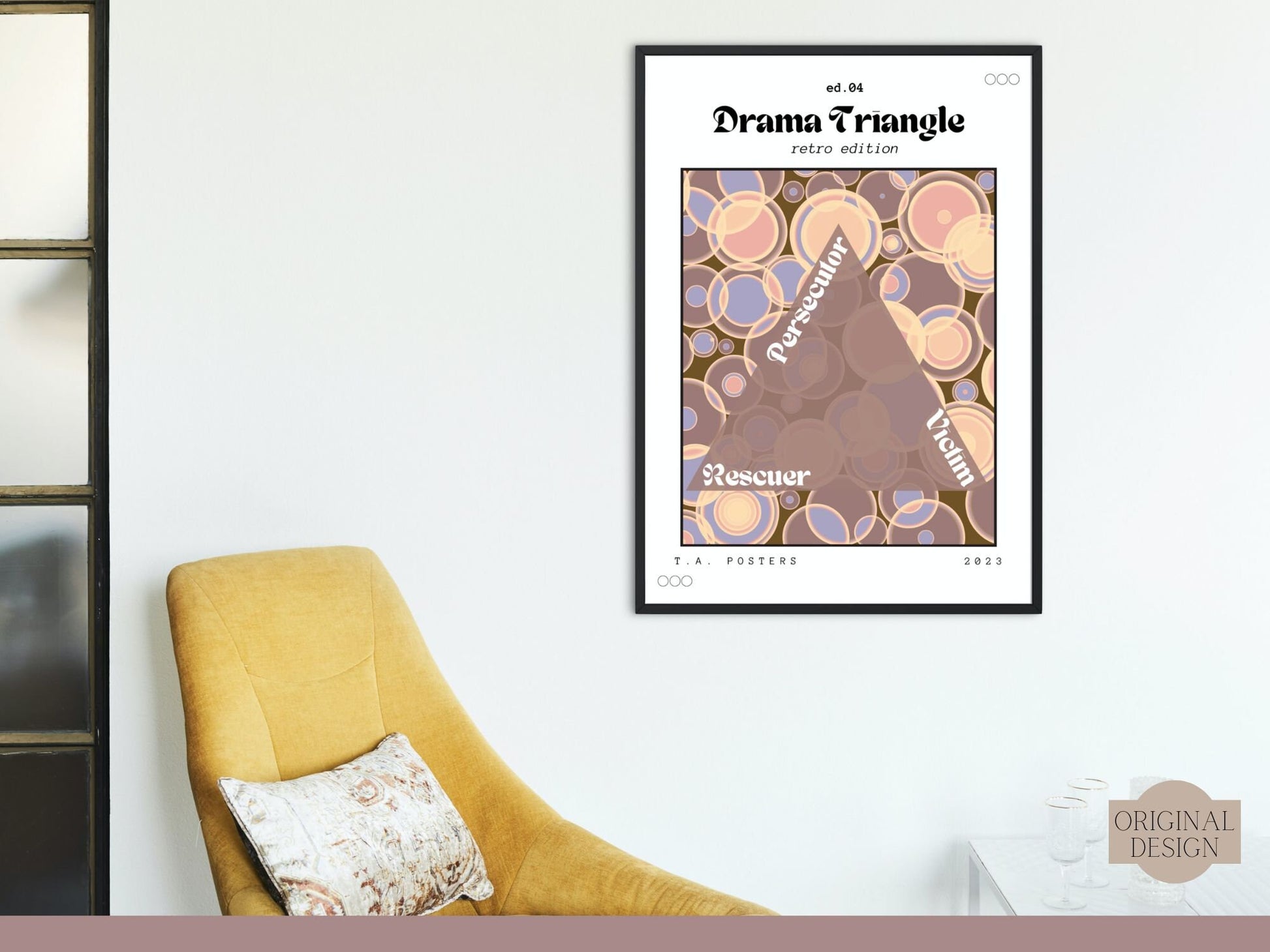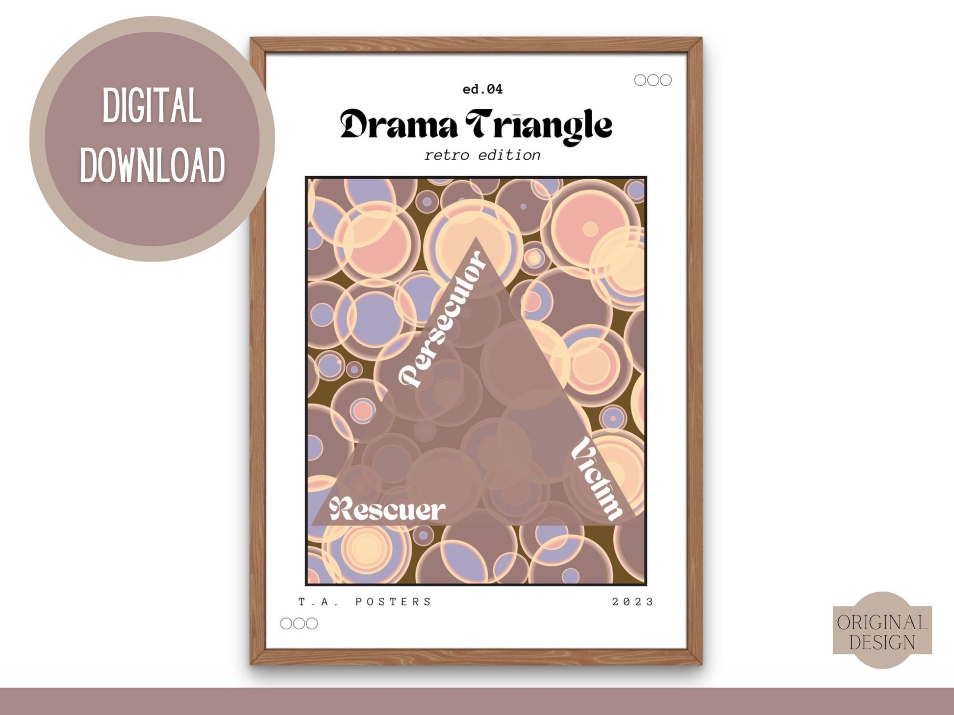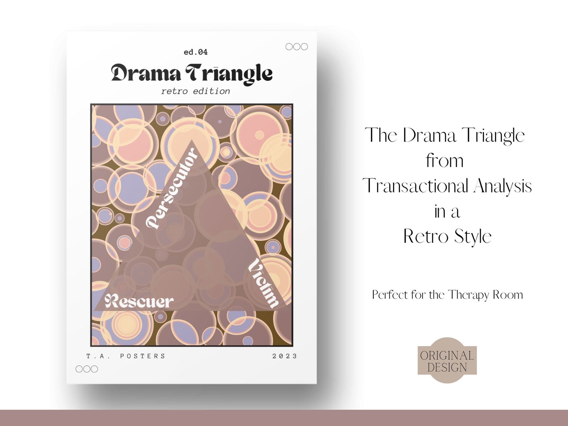 Step into the world of psychology with our stunning Transactional Analysis Drama Triangle retro-style poster. Original design of Mia-Life Therapy. This poster is perfect for any therapist, counselor, or psychology enthusiast looking to bring style and inspiration to their office or home. Enhance your understanding of this important model while adding a touch of vintage charm to your space. Order now and elevate your knowledge of Transactional Analysis to the next level!